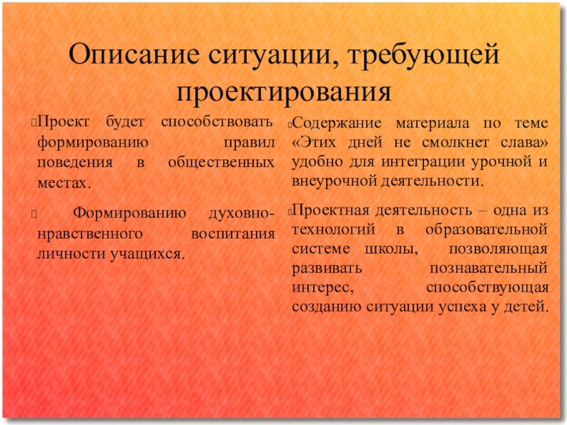 Проектная деятельность – одна из технологий в образовательной системе школы, позволяющая развивать познавательный интерес, способствующая созданию ситуации успеха у детей.