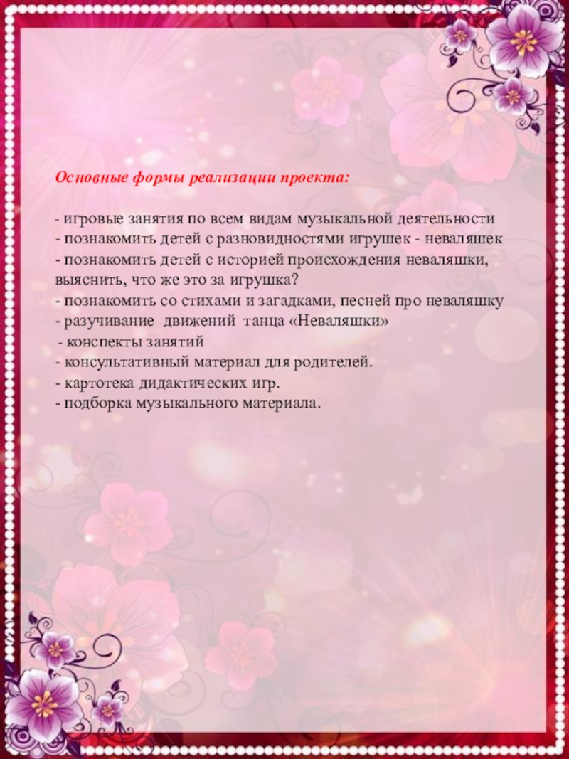 М.р: Ребята, у вас получились яркие, красивые Неваляшки. Пока вы рисовали их, у нас в зале появилась клумба, на которой расцвели цветы. Вы хотели бы водить хоровод с Неваляшками вокруг этой клумбы?
