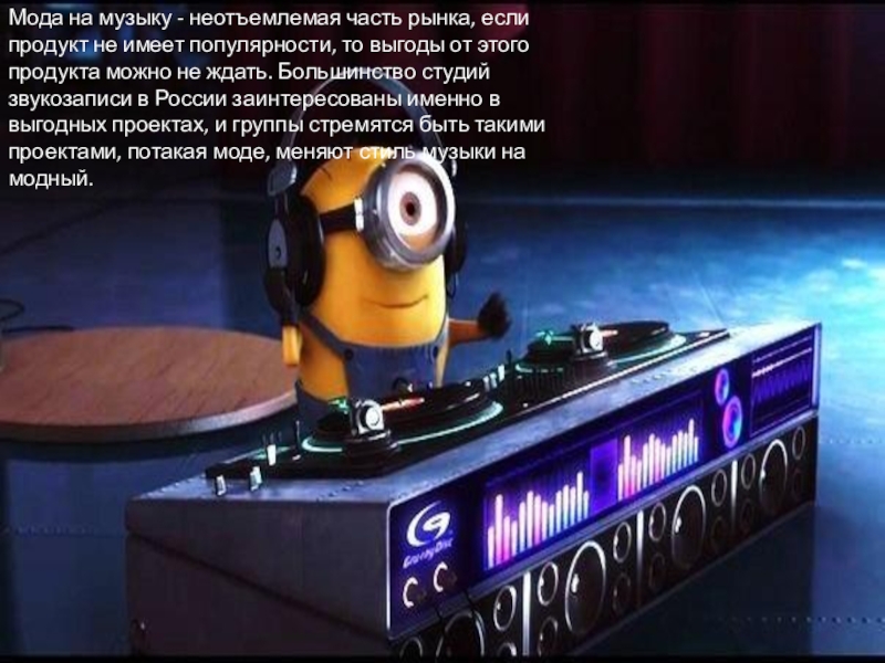 Слайд 10Мода на музыку - неотъемлемая часть рынка, если продукт не имеет