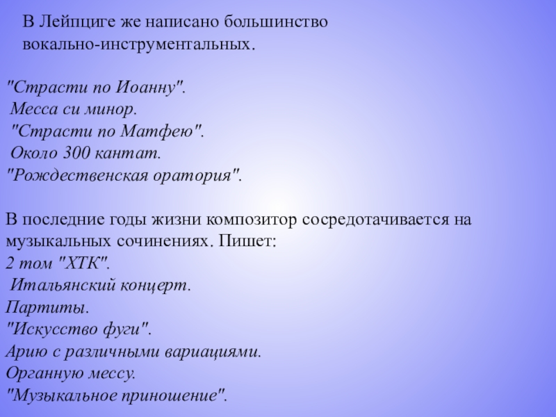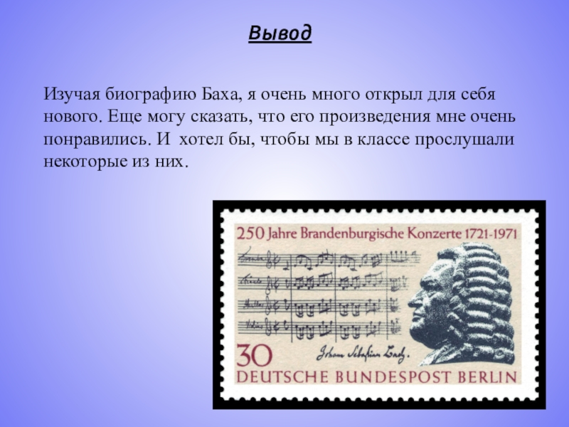 Слайд 16Изучая биографию Баха, я очень много открыл для себя нового. Еще