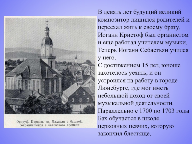 Слайд 5В девять лет будущий великий композитор лишился родителей и переехал жить