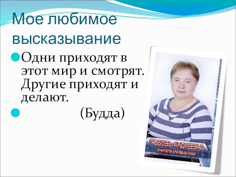 Слайд 1Визитная карточка учителя математики Волковой Любовь Андреевны