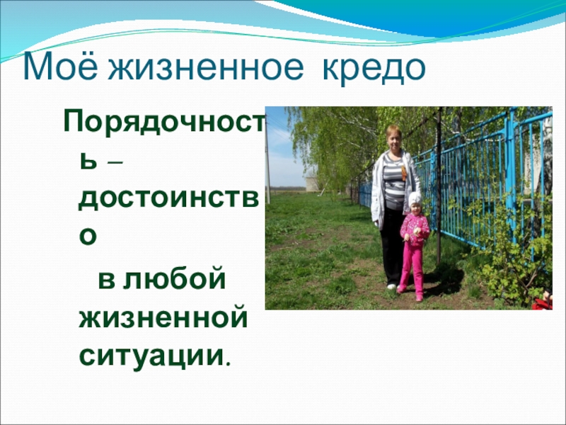 Моё жизненное кредоПорядочность –достоинство   в любой жизненной ситуации.