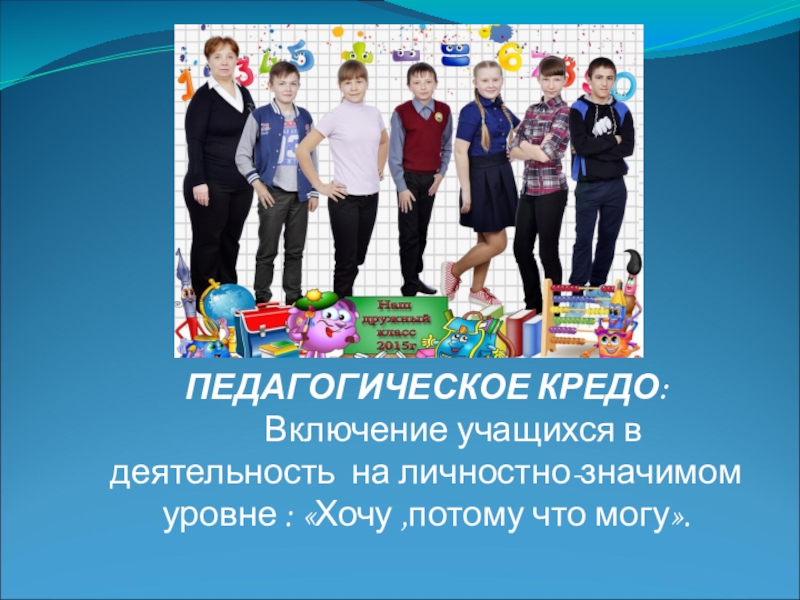 ПЕДАГОГИЧЕСКОЕ КРЕДО:    Включение учащихся в деятельность на личностно-значимом уровне : «Хочу ,потому что могу».
