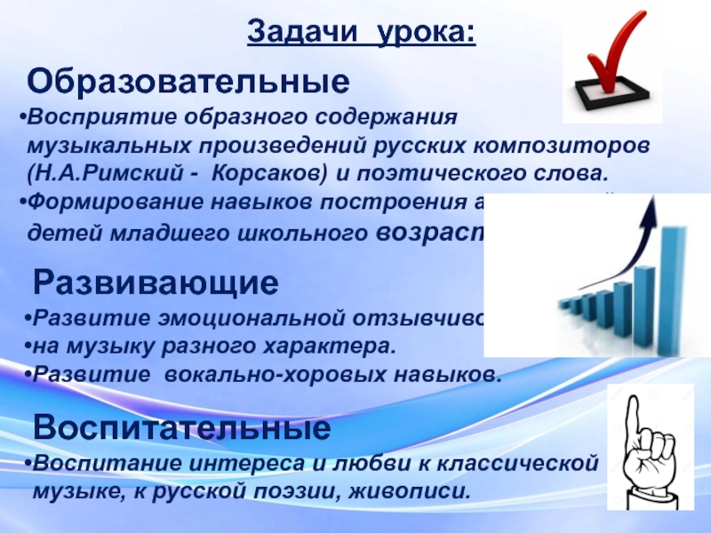 Воспитание интереса и любви к классической музыке, к русской поэзии, живописи.