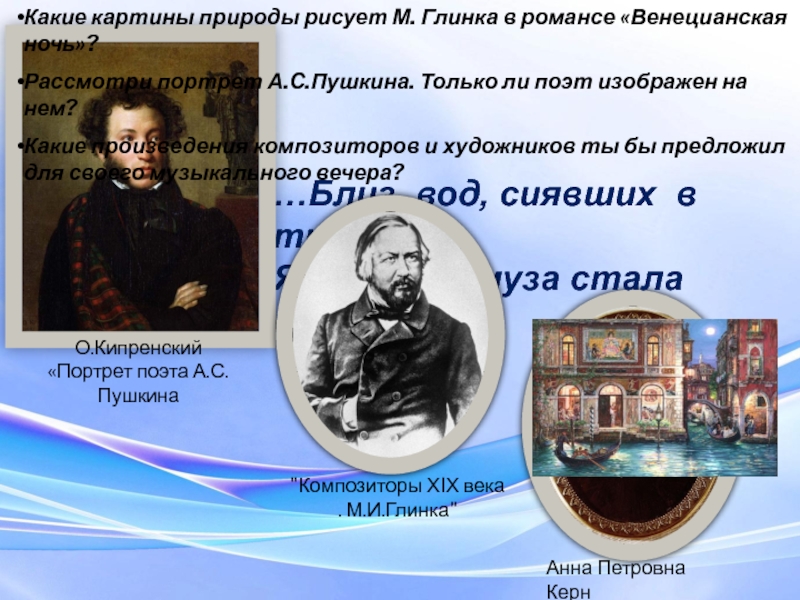 Какие картины природы рисует М. Глинка в романсе «Венецианская ночь»?