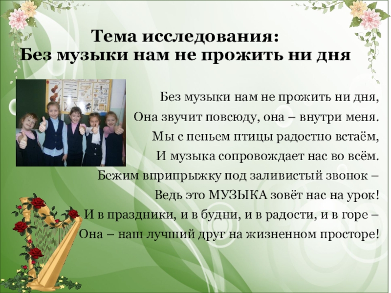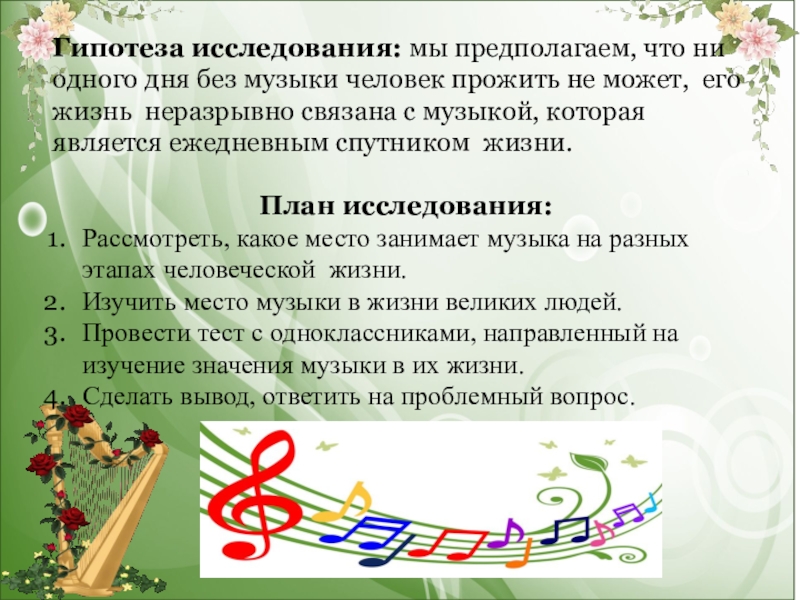 Слайд 4Гипотеза исследования: мы предполагаем, что ни одного дня без музыки человек