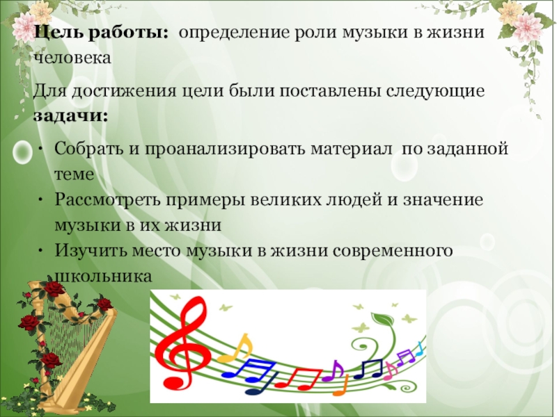 Слайд 3Цель работы: определение роли музыки в жизни человека