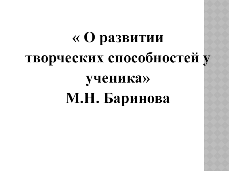 « О развитии творческих способностей уученика»М.Н. Баринова