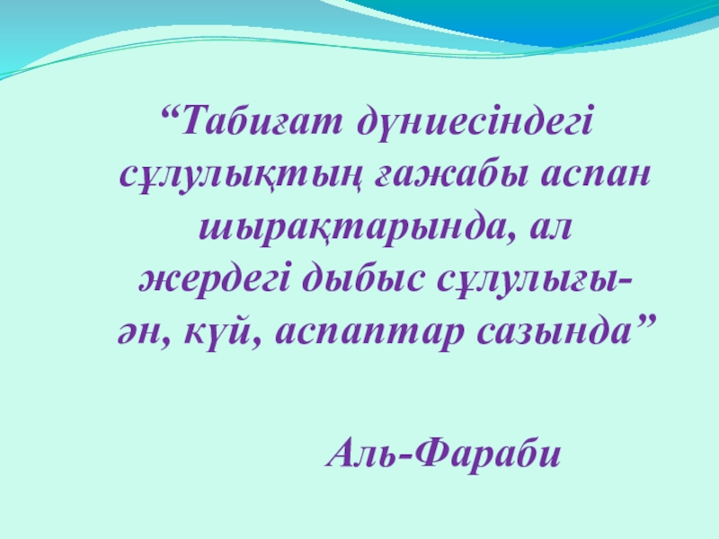 Слайд 5“Табиғат дүниесіндегі сұлулықтың ғажабы аспан шырақтарында, ал жердегі дыбыс сұлулығы- ән,