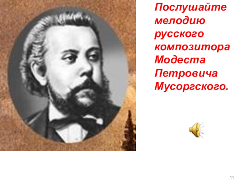 Слайд 11Послушайте мелодию русского композитора Модеста Петровича Мусоргского.