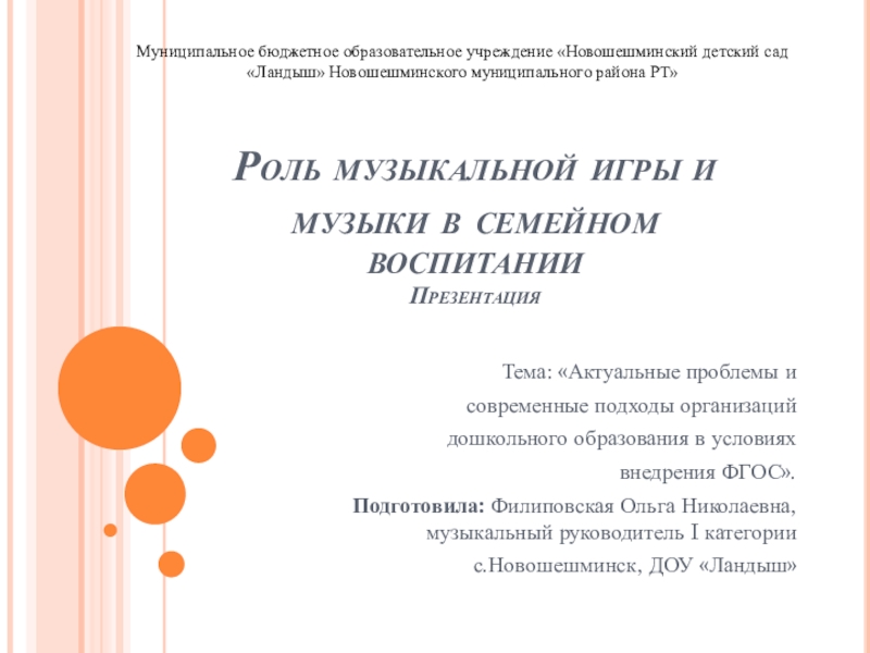 Подготовила: Филиповская Ольга Николаевна, музыкальный руководитель I категории
