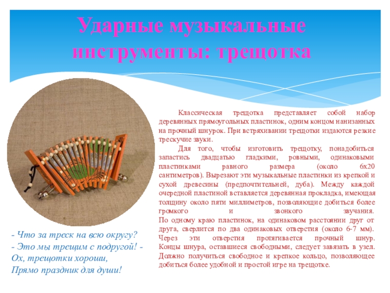 Старинный, экзотический русский народный ударный музыкальный инструмент дрова возник в глубокой, седой древности.