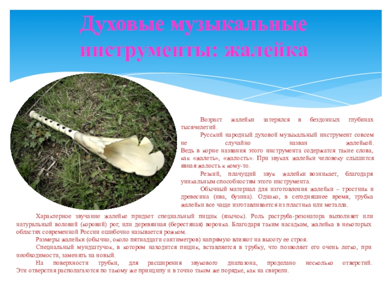 Русский народный духовой музыкальный инструмент совсем не случайно назван жалейкой.