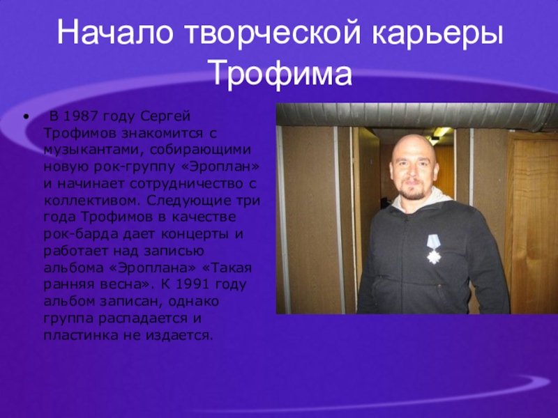 Начало творческой карьеры Трофима В 1987 году Сергей Трофимов знакомится с музыкантами, собирающими новую рок-группу «Эроплан» и
