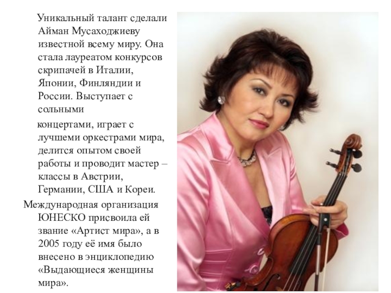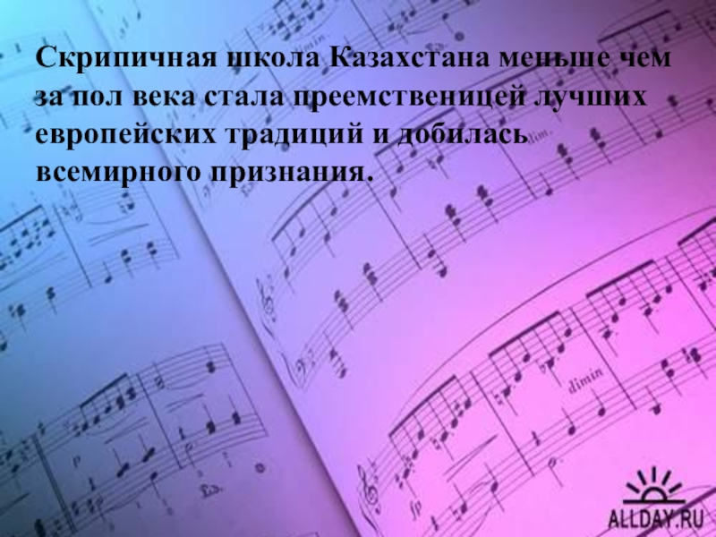 Скрипичная школа Казахстана меньше чем за пол века стала преемственицей лучших европейских традиций и добилась всемирного признания.