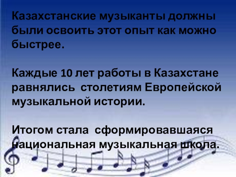 Каждые 10 лет работы в Казахстане равнялись столетиям Европейской музыкальной истории.