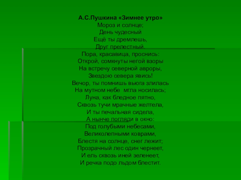 Слайд 3А.С.Пушкина «Зимнее утро»
