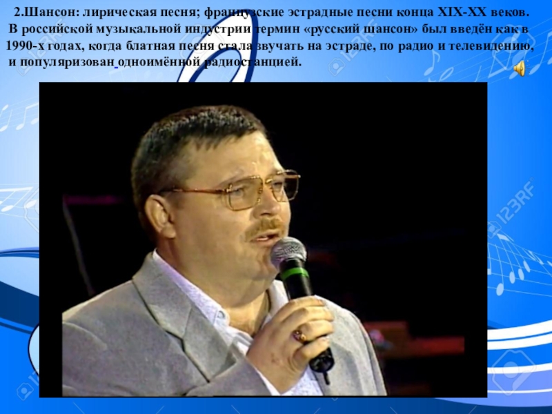 В российской музыкальной индустрии термин «русский шансон» был введён как в 1990-х годах, когда блатная песня стала звучать на эстраде, по радио