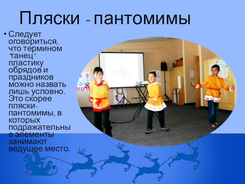 можно назвать лишь условно. Это скорее пляски-пантомимы, в которых подражательные элементы занимают ведущее место.
