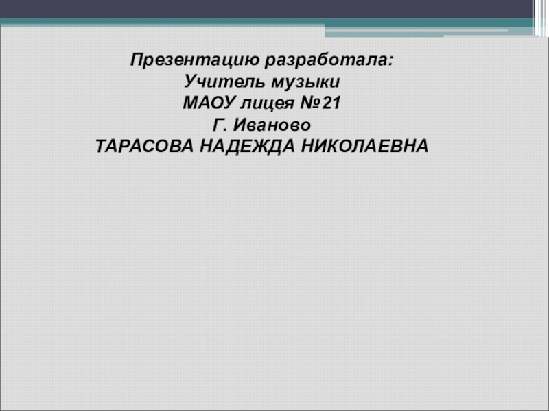 Презентацию разработала:Учитель музыкиМАОУ лицея №21Г. ИвановоТАРАСОВА НАДЕЖДА НИКОЛАЕВНА