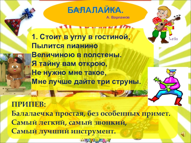 Бала - балалаечка балалайка, самый легкий, самый звонкий,