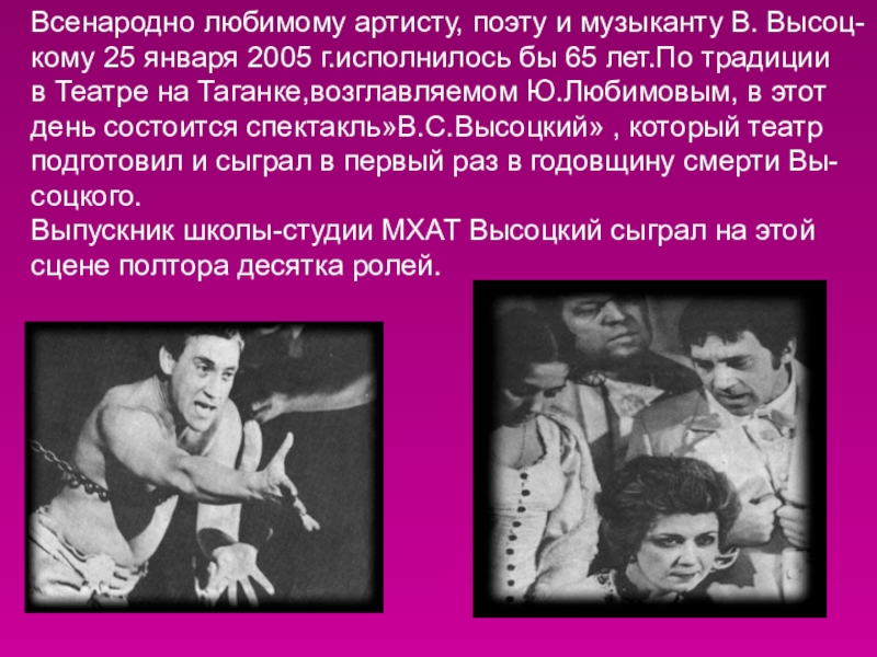 Слайд 10Кино и театр в жизни В.Высоцкого