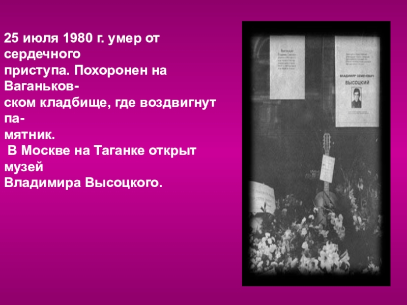 Всенародно любимому артисту, поэту и музыканту В. Высоц-