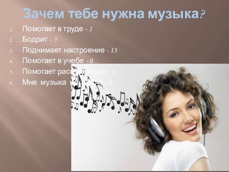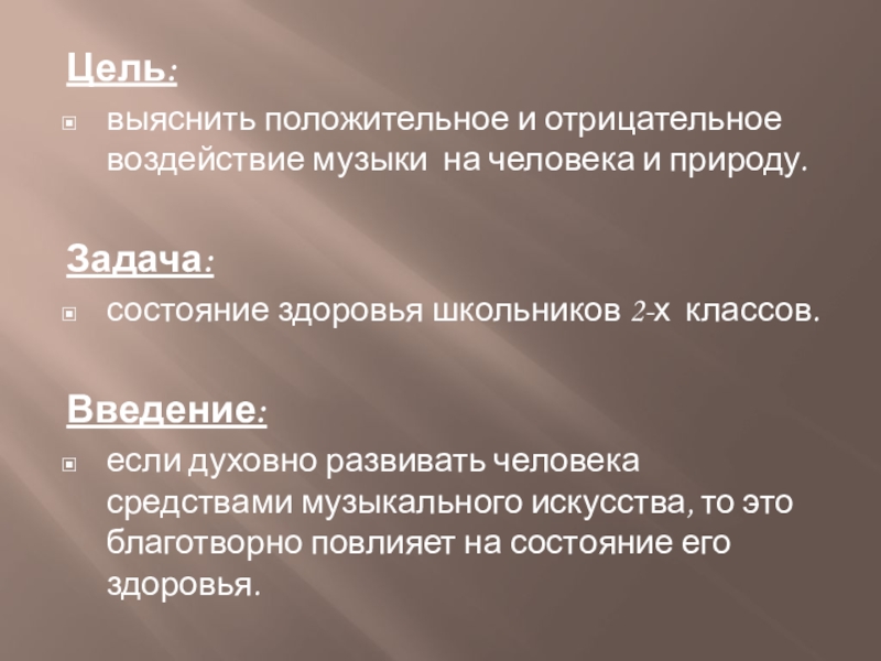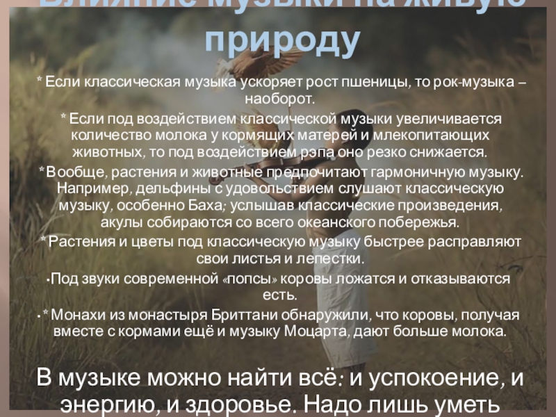 выяснить положительное и отрицательное воздействие музыки на человека и природу.
