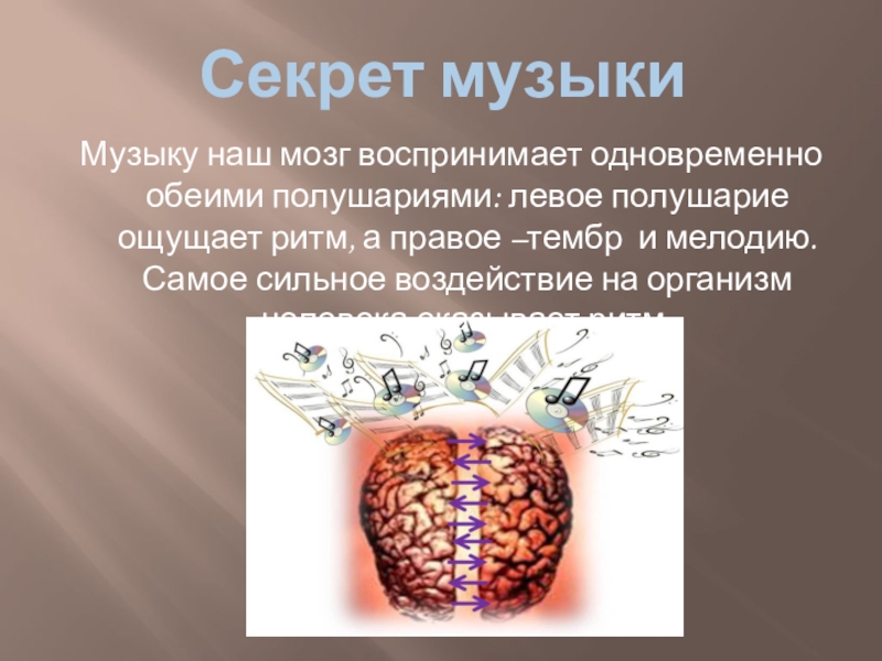 Музыку наш мозг воспринимает одновременно обеими полушариями: левое полушарие