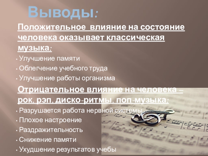 Отрицательное влияние на человека – рок, рэп, диско-ритмы, поп-музыка: