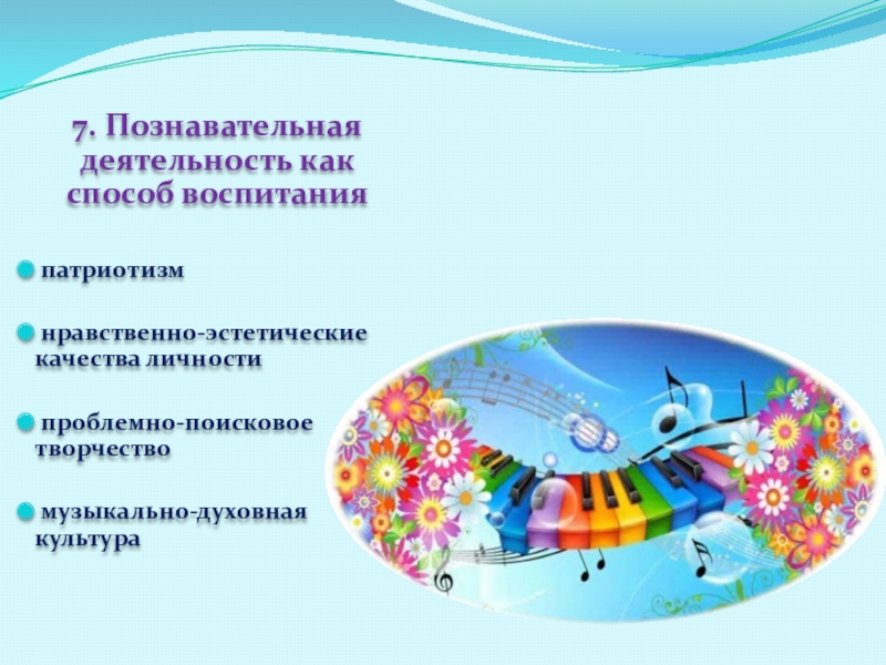 7. Познавательная деятельность как способ воспитания патриотизм нравственно-эстетические качества личности проблемно-поисковое творчество музыкально-духовная культура