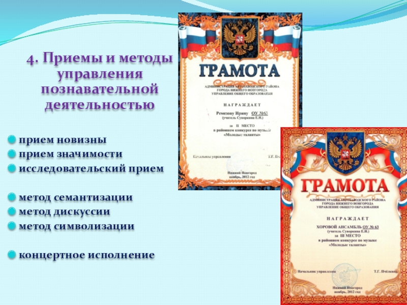 4. Приемы и методы управления познавательной деятельностью прием новизны прием значимости исследовательский прием метод семантизации метод дискуссии