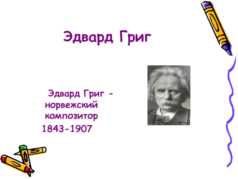Эдвард Григ    Эдвард Григ - норвежский композитор1843-1907