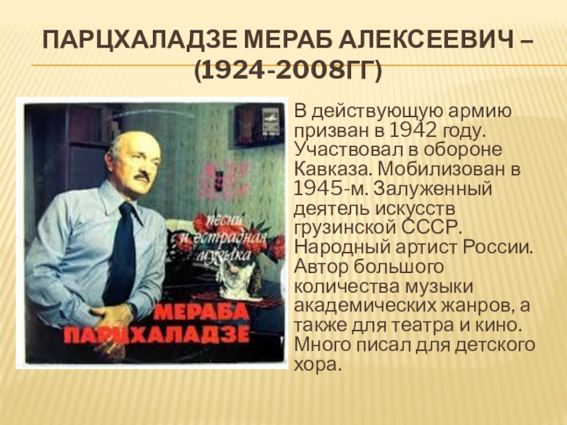 Слайд 20Парцхаладзе Мераб Алексеевич –