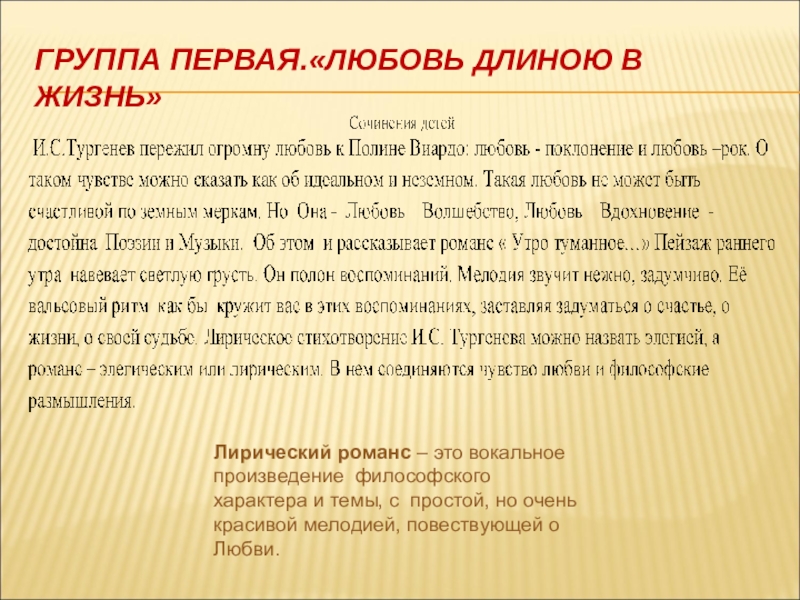 Слайд 21ГРУППА ПЕРВАЯ.«ЛЮБОВЬ ДЛИНОЮ В ЖИЗНЬ»