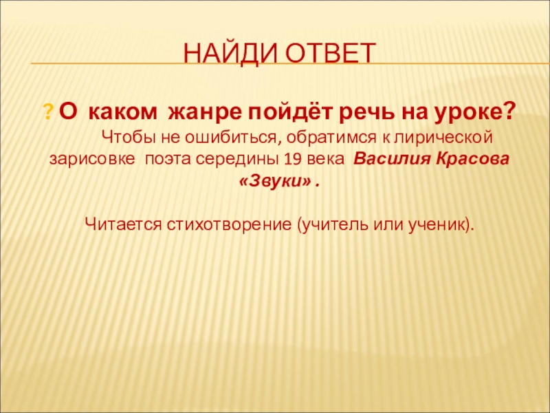 Чтобы не ошибиться, обратимся к лирической зарисовке поэта середины 19 века Василия Красова «Звуки» .