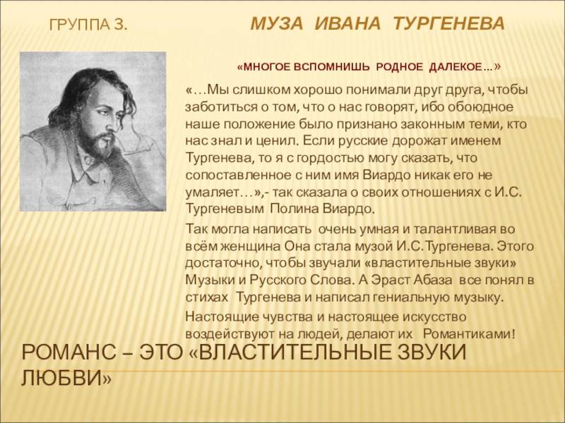 ГРУППА 3. МУЗА ИВАНА ТУРГЕНЕВА