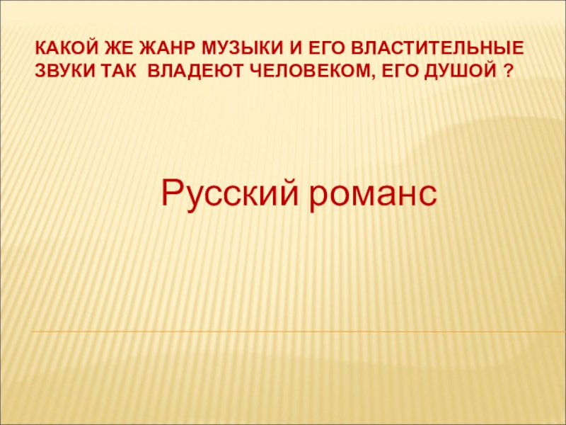 Слайд 14КАКОЙ ЖЕ ЖАНР МУЗЫКИ И ЕГО ВЛАСТИТЕЛЬНЫЕ ЗВУКИ ТАК ВЛАДЕЮТ ЧЕЛОВЕКОМ,