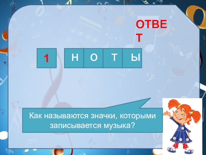 1Как называются значки, которыми записывается музыка?ОТВЕТ