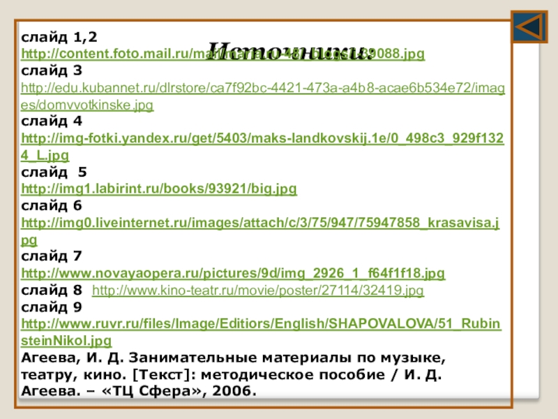 Агеева, И. Д. Занимательные материалы по музыке, театру, кино. [Текст]: методическое пособие / И. Д. Агеева. – «ТЦ Сфера», 2006.