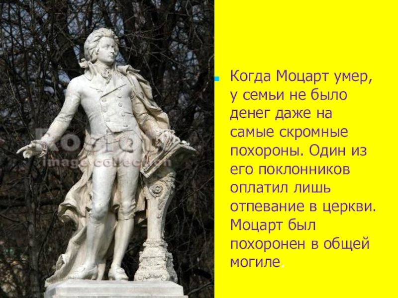 Слайд 17Когда Моцарт умер, у семьи не было денег даже на самые