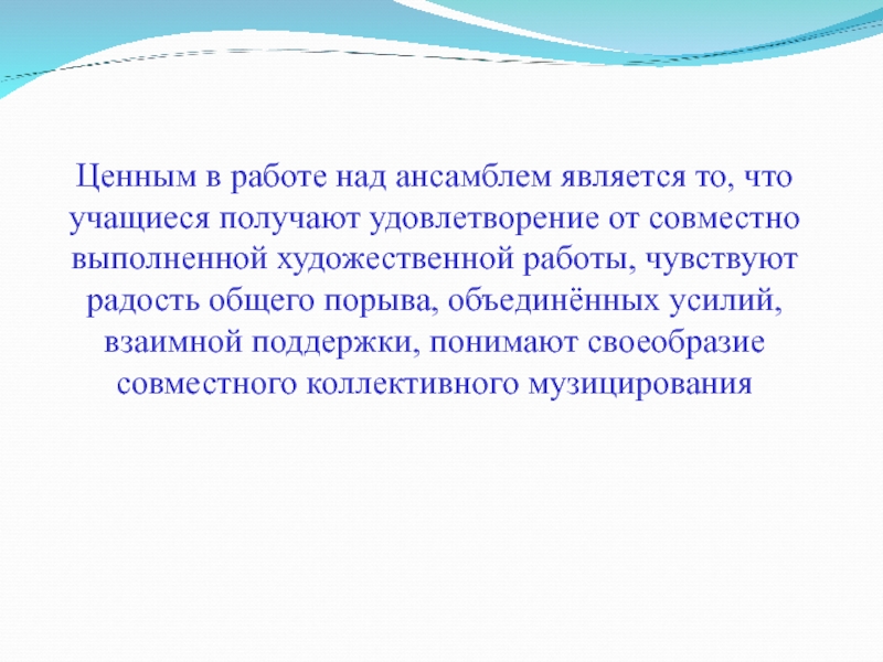 Ценным в работе над ансамблем является то, что учащиеся получают удовлетворение