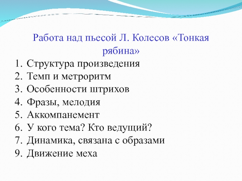 Слайд 9Работа над пьесой Л. Колесов «Тонкая рябина»