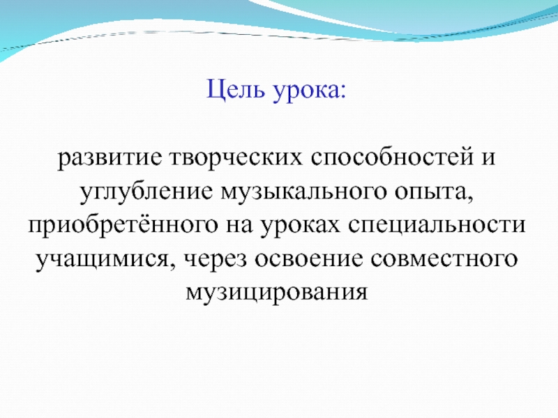 не только умение играть самому, но и умение чувствовать и творить в коллективе, раскрывать замысел музыкального произведения с помощью выразительных средств музыки.