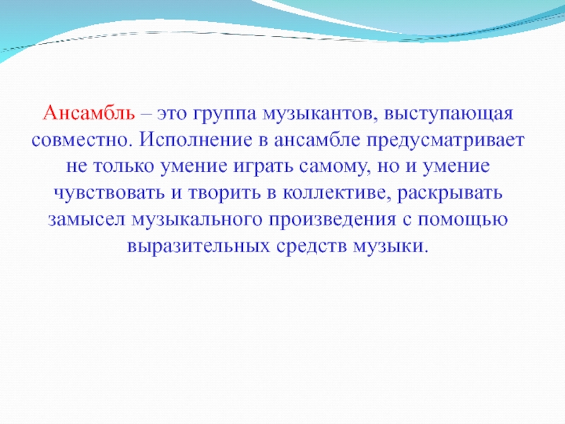 Ансамбль – это группа музыкантов, выступающая совместно. Исполнение в ансамбле предусматривает