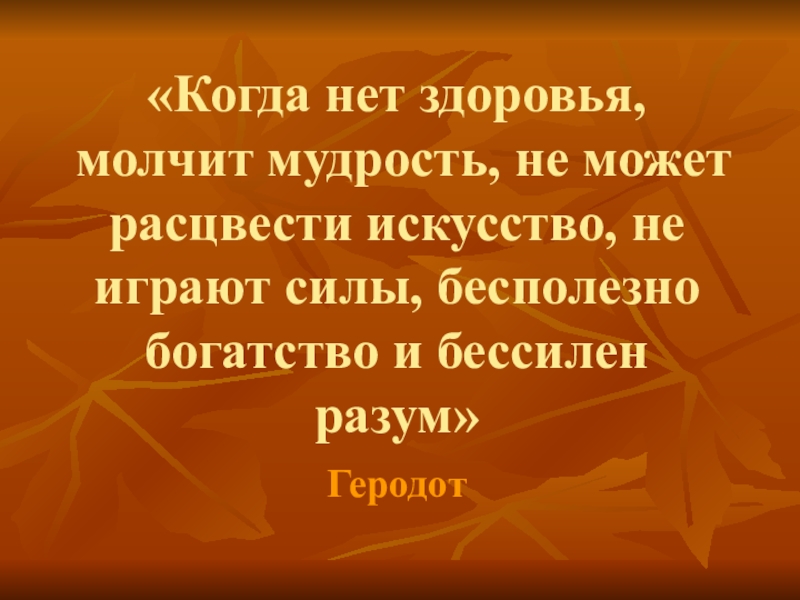 «Когда нет здоровья, молчит мудрость, не может расцвести искусство, не играют