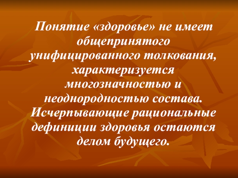и неоднородностью состава. Исчерпывающие рациональные дефиниции здоровья остаются делом будущего.
