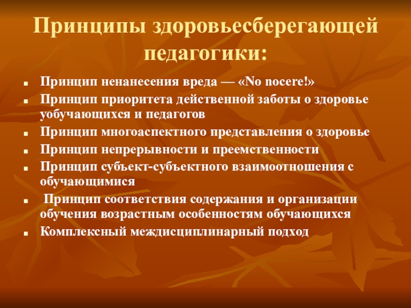 Слайд 13Принципы здоровьесберегающей педагогики:
