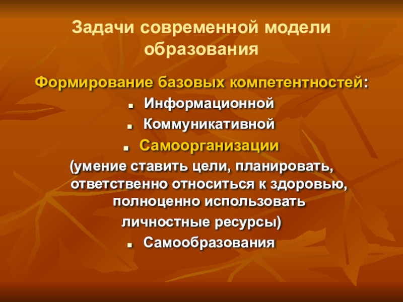 Цель здоровьеформирующего образования – изменение смысловых установок личности (внутренней картины здоровья) и формирование компетенции здоровьеформирующего поведения.